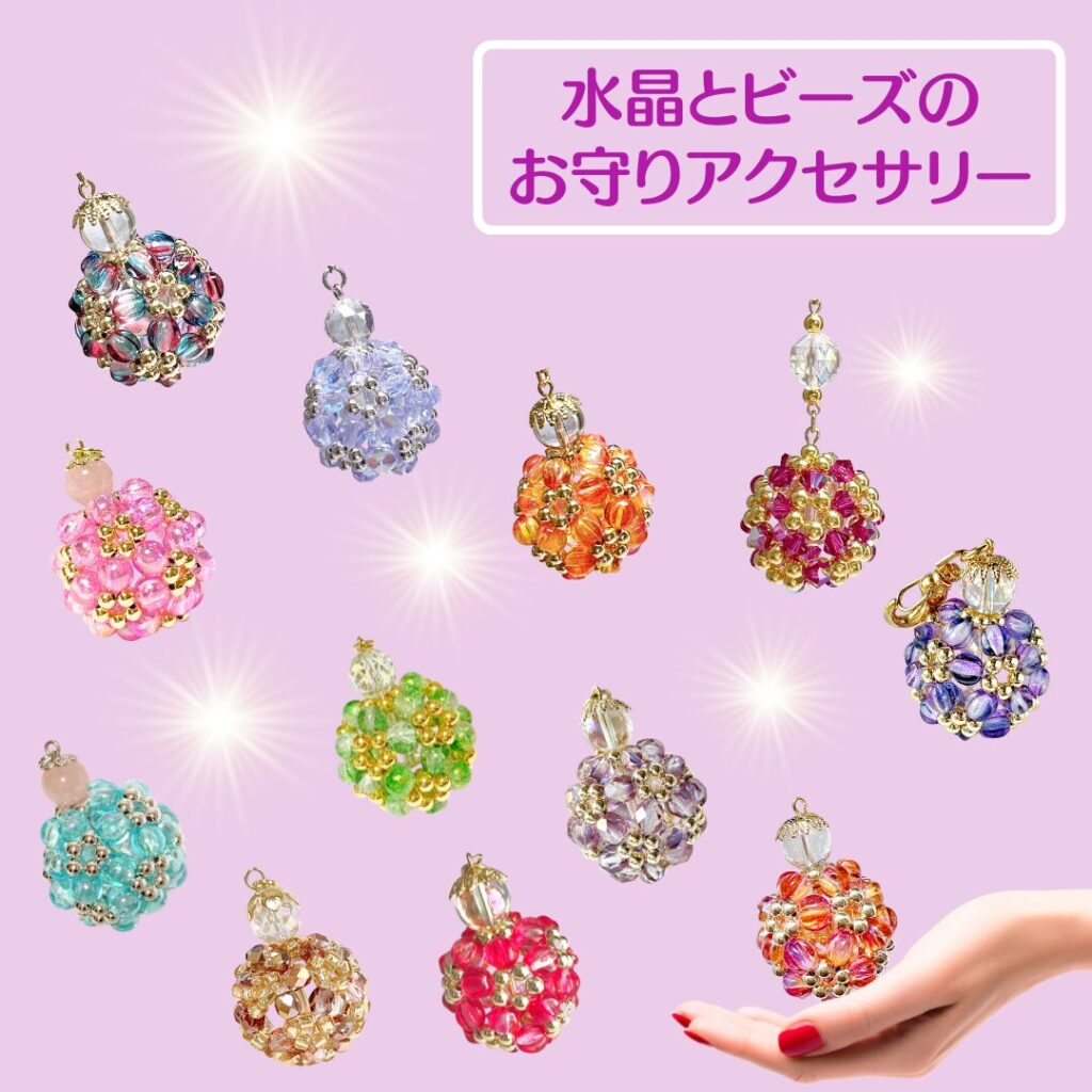 水晶とビーズを組み合わせ、