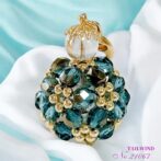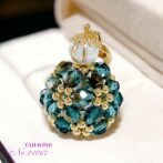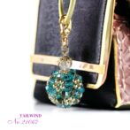 エメラルドグリーンの高級感あふれる光を放つビーズボール。カットの美しいチェコビーズとゴールドビーズの上品な輝きは、見る人の心にまで届くような光です。