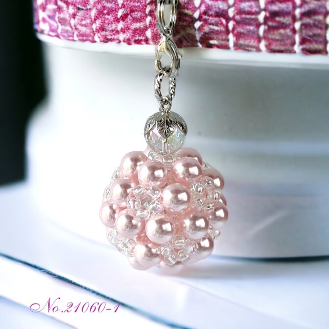 パールビーズの上品な輝きと、ビーズ全体の華やかさが絶妙に調和し、普段使いはもちろん、特別なお出かけの日のバッグチャームとしてもおすすめです。