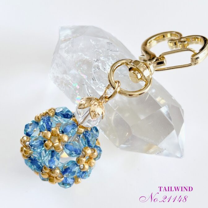 透き通るようなブルーのビーズがキラリと輝く上品なビーズボールのチャームです。