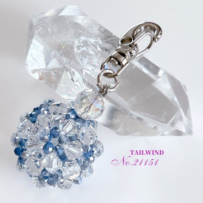 透明感のあるブルーとクリアのビーズが、涼やかにきらめくビーズボール。