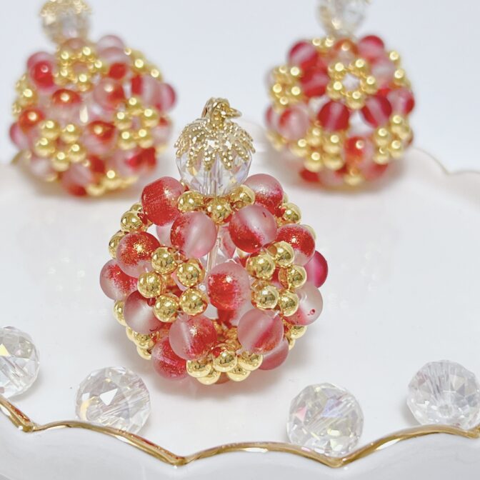 ◉あざやかな赤いビーズとゴールドの輝きは華やかな印象です。
