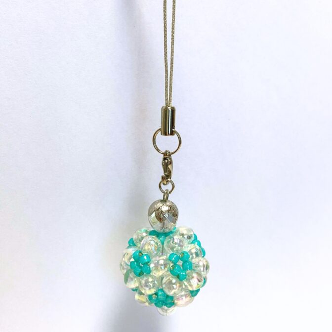 カバンにつけて楽しめる、お守りのようなビーズボールアクセサリーです。